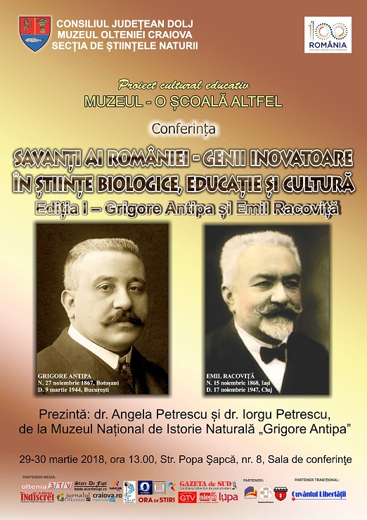 Conferințaesteadresatăpublicului de toate categoriile și vârstele și se va derula în mai multe ediții. În prima ediție vor fi evocate două personalități apropiate ca origini și anvergură științifică: GrigoreAntipași Emil Racoviță. Detaliidespreviațașiactivitateacelordoisavanțivor fi expuseprinmijloace multimedia, de cătredoiinvitatide la Muzeul Național de Istorie Naturală „Grigore Antipaˮ, respectiv d-nadr. Angela Petrescu și dl. dr. Iorgu Petrescu,cercetători consacrați, cu un bogat palmares științific și cultural-educativ.