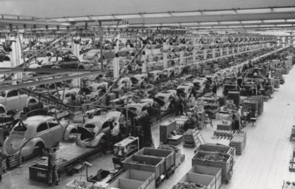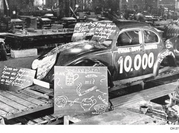 1951 – Timpul de asamblare al unei masini la uzina Volkswagen scade de la 127 de ore la 116 ore. Pretul de baza al modelului Beetle este de 4.600 de marci, în timp ce salariul mediu din Germania este de 346 DM. În 13 luni, un muncitor îsi poate cumpara o masina.