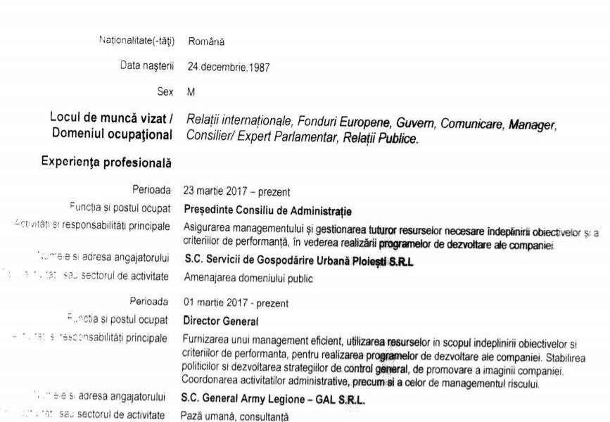 Revenind la subiect, în declarațiile de avere din 2017 și 2018, postate de șeful CA-ului de la SGU, Ionuț Crețu, membru al organizației PSD Prahova, sunt trecut veniturile obținute de acesta (peste 20.000 de lei în total) la firma de pază General Army Legione (GAL), unde, potrivit CV-ului său, este director general