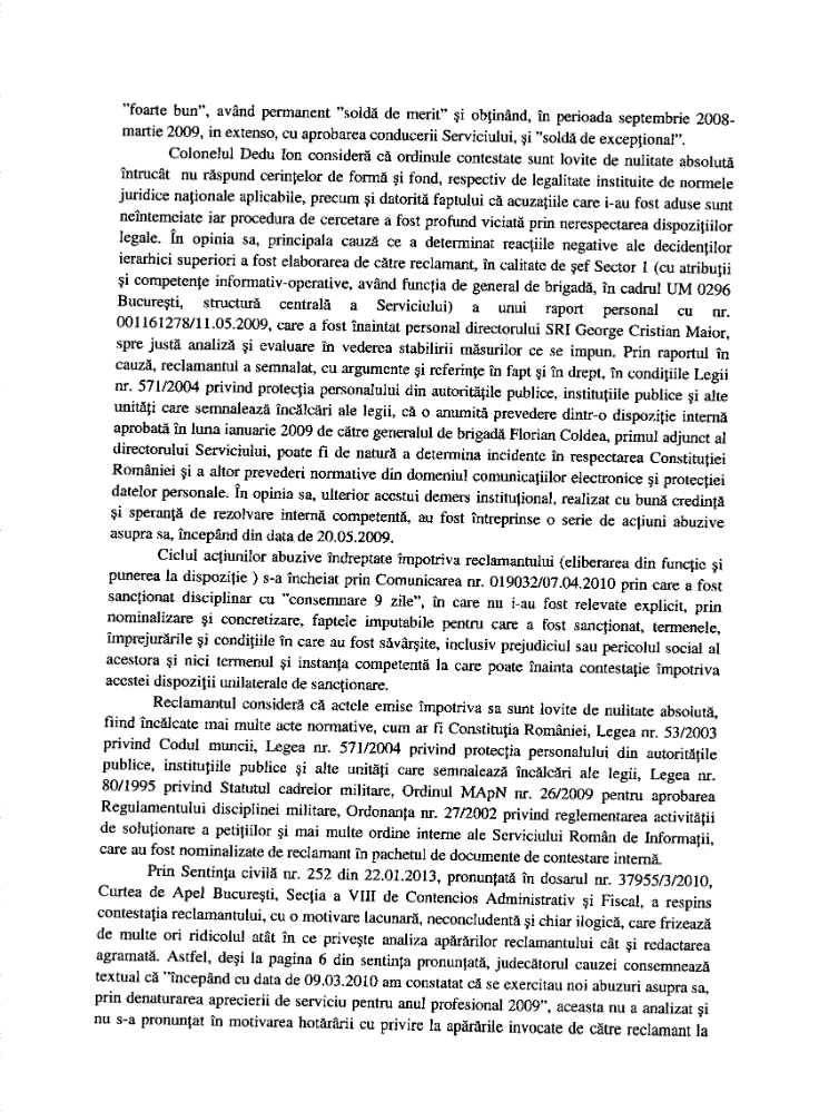 Pentru cei interesati, iata ceva ce poate pentru unii indica modul in care s-a aplicat protocolul SRI – CSM, intre SRI-IJ intr-o speta clara, adica in procesul col SRI, Ion Dedu in contencios admnistrativ!