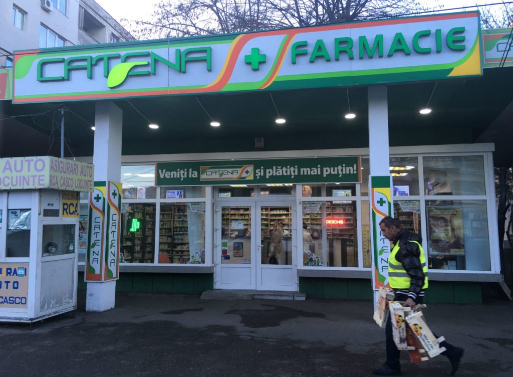 Această farmacie, deschisă la o adresă din cartierul brașovean Astra, funcționează în baza unei autorizații cumpărate de Catena de la Silviu Constantinescu cu 40.000 de euro, în aprilie 2012. FOTO: RISE Project.