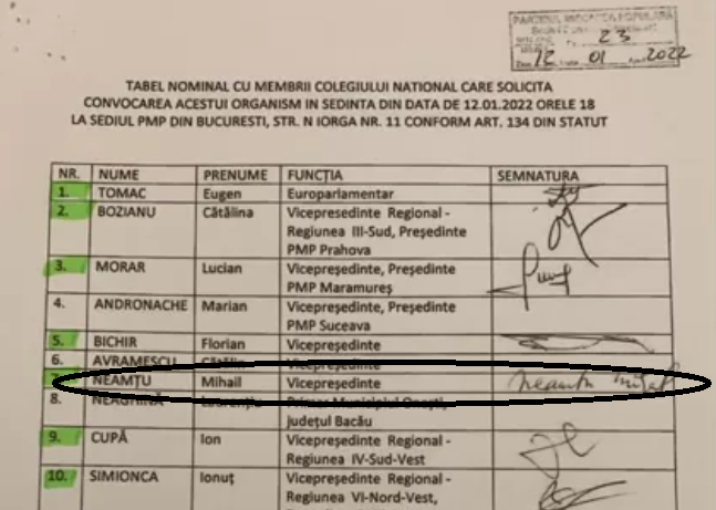 Mihail Neamțu, care ocupă funcția de vicepreședinte al PMP, s-a numărat printre liderii care au semnat convocarea, în 12 ianuarie a.c., a forurilor de decizie ale partidului în care s-a votat convocarea Congresului pe 19 februarie a.c.