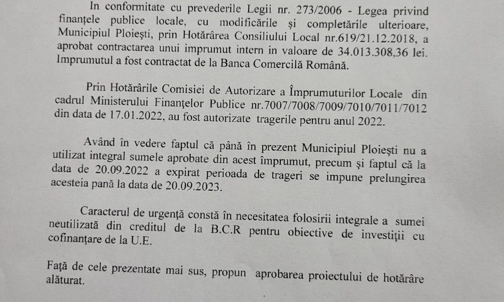 Atenționam, de asemenea, că această procedură va pune primăria Ploiești în imposibilitatea de a cofinanța proiectele pe fonduri europene în valoare de 331.244.490,96 de lei, pe care le-a predat Dobre i le-a predat predecesorului său, Andrei Volosevici, cu contractele semnate și bugetele asigurate.