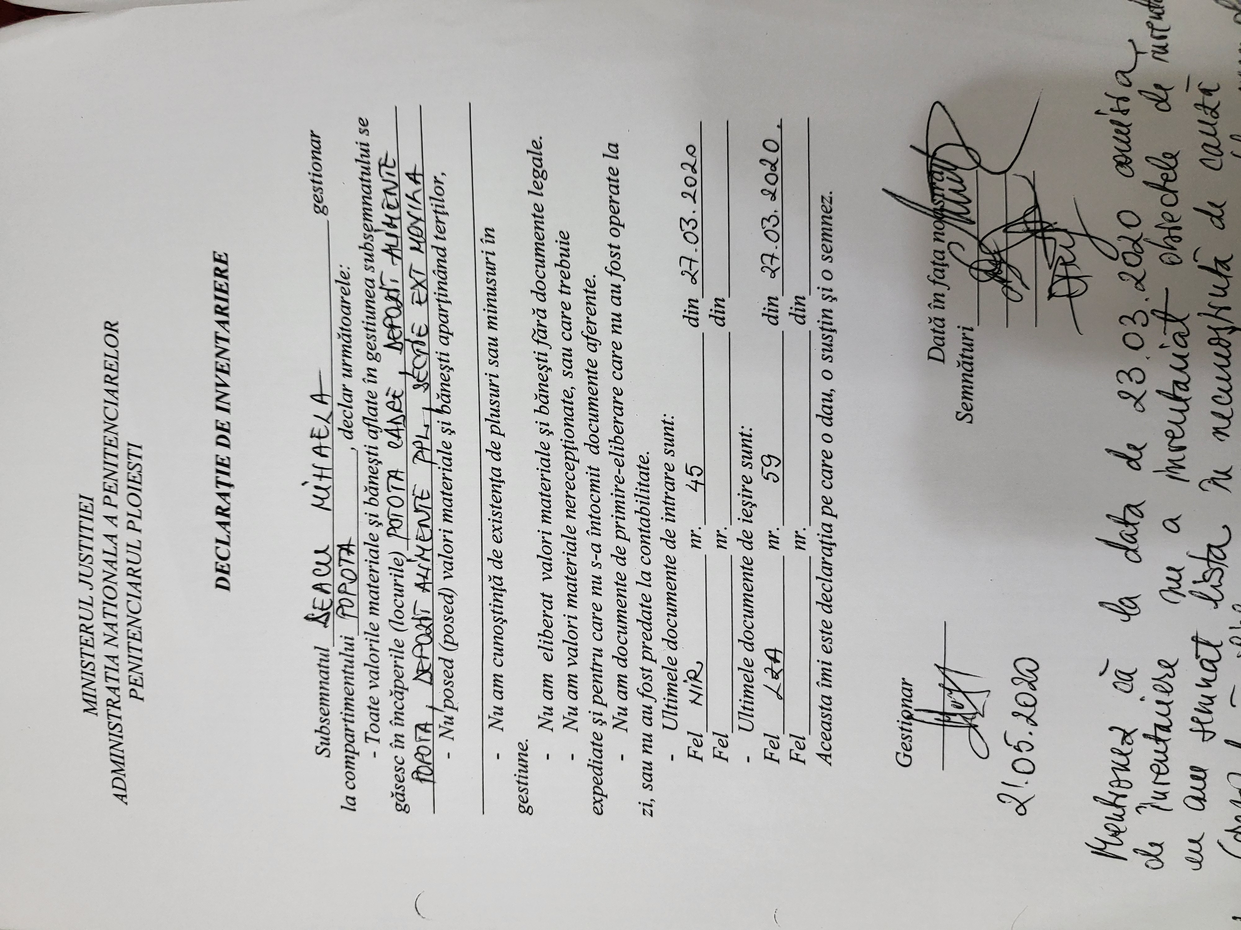 „Mentionez ca la data de 23.03.2020, comisia de inventariere NU a inventariat obiectele de inventar eu am semnat lista in necunostinta de cauza (crezand ca lista cu alimente e in dublu exemplar)”.