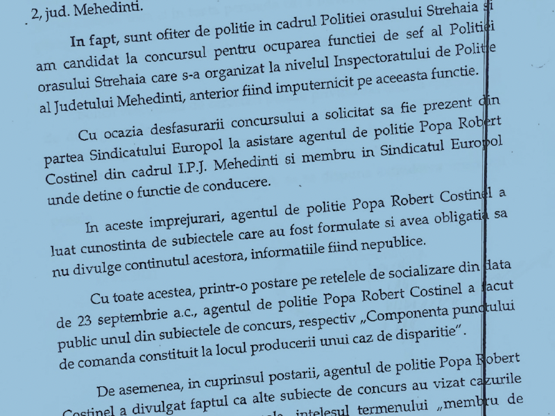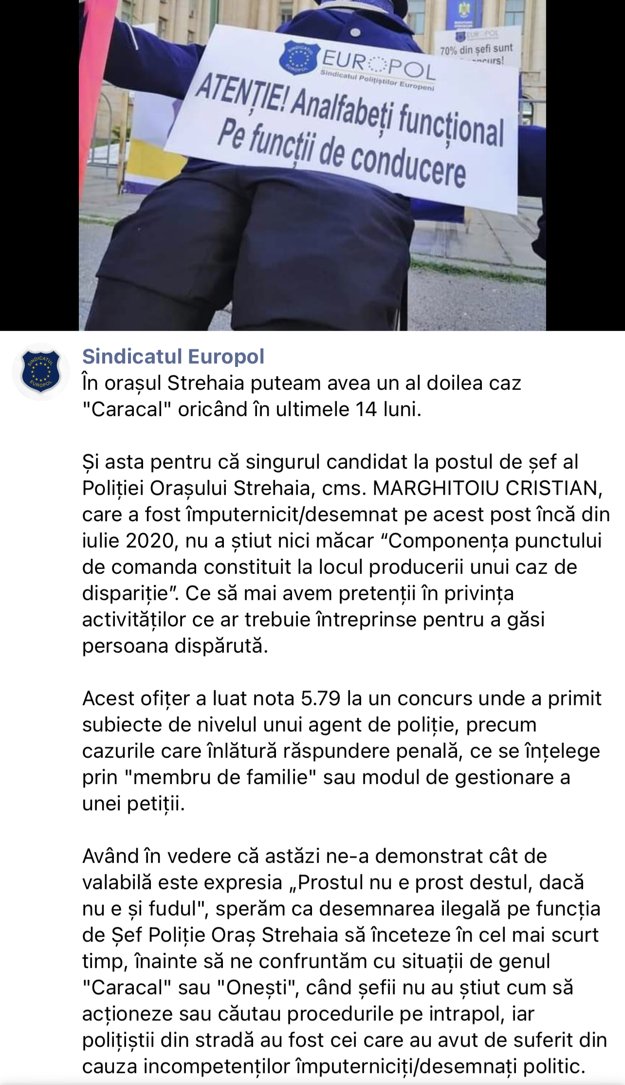 Din acest motiv, am fost nevoiți să alocăm resurse consistente de-a lungul ultimilor ani pentru a documenta cazurile de împuterniciri realizate cu încălcarea termenului prevăzut de art. 2716 din Legea 360/2002 privind Statutul Polițistului, dar și cazurile de „desemnare”, în condițiile în care la nivelul unității îndeplineau condițiile pentru a fi împuterniciți zeci de ofițeri, mai dezvaluie cei de la Europol. Un astfel de caz l-am documentat și la nivelul Poliției Orașului Strehaia din jud. Mehedinți, unde au fost realizate mai multe împuterniciri ale unui ofițer despre care am sesizat în mai multe rânduri șefii lui ierarhici cu privire la deficiențe în actul managerial.