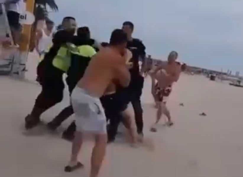 După ce si-au împărțit pumni și picioare între ei, pe plaja din Costinești, scandalagiii si-au îndreptat atenția către forțele de ordine, polițiști și jandarmi – Ziarul Incisiv de Prahova