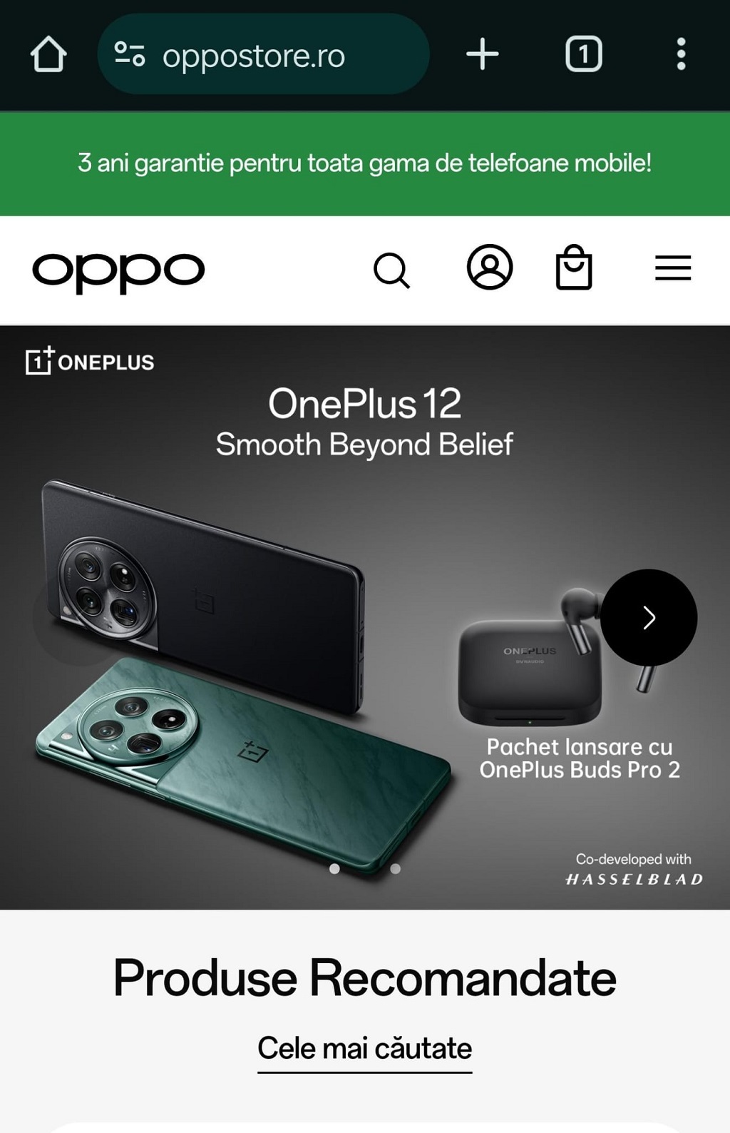 Pe oppostore.ro, clienții pot beneficia de avantaje suplimentare până la data de 29 februarie 2024. OnePlus 12 este disponibil la prețul promoțional de 5699,9 lei împreună cu căștile wireless OnePlus Buds Pro 2 și peste 500 de puncte OPPO. De asemenea, modelul OnePlus 12R vine cu o ofertă atractivă, împreună cu căștile OnePlus Buds Pro 2 la un preț special de 3699,9 lei. Utilizatorii se bucură, de asemenea, de o garanție extinsă de 3 ani pentru produse, livrare gratuită și acumularea de puncte OPPO care pot fi utilizate pentru achiziționarea altor produse din magazinul online – oppostore.ro.
